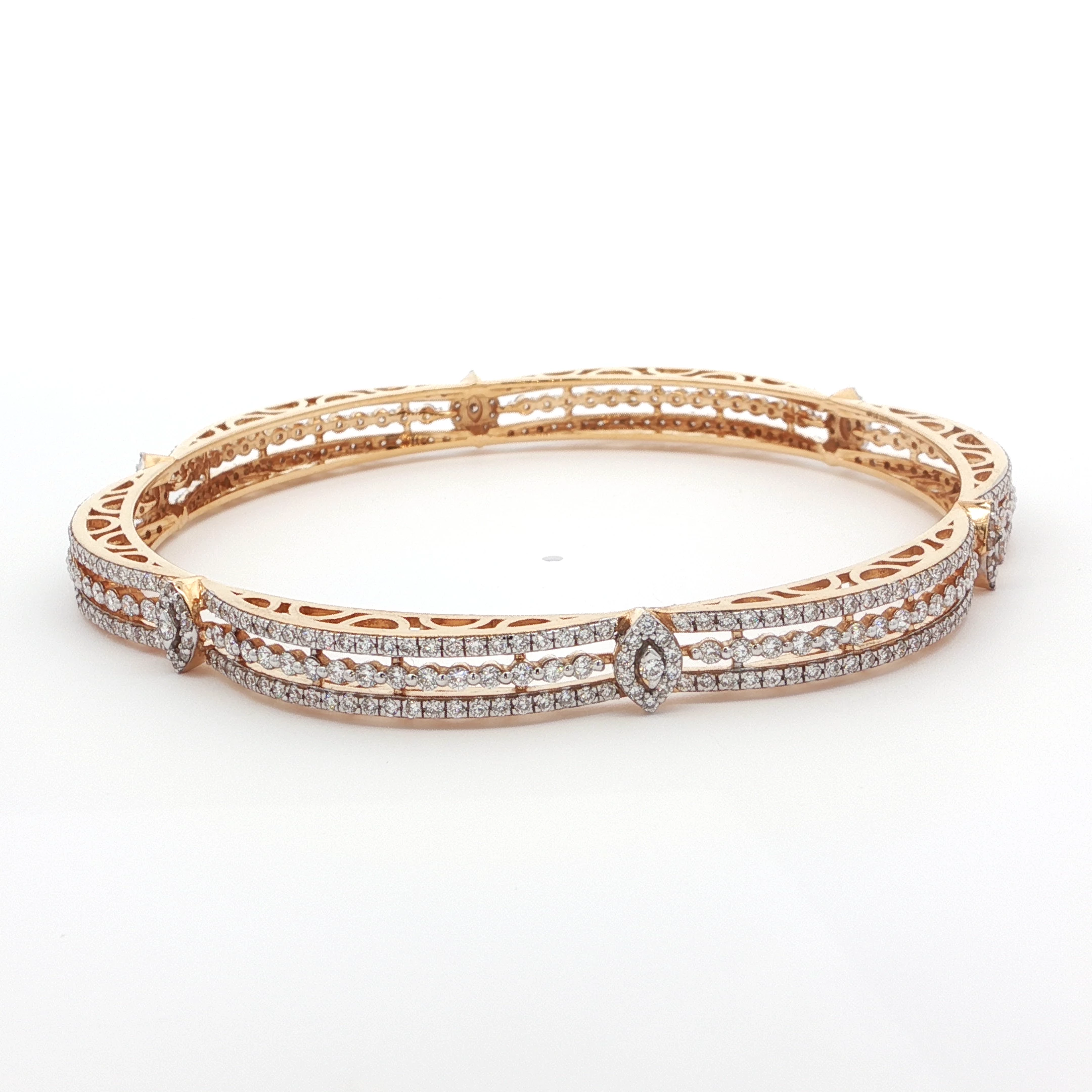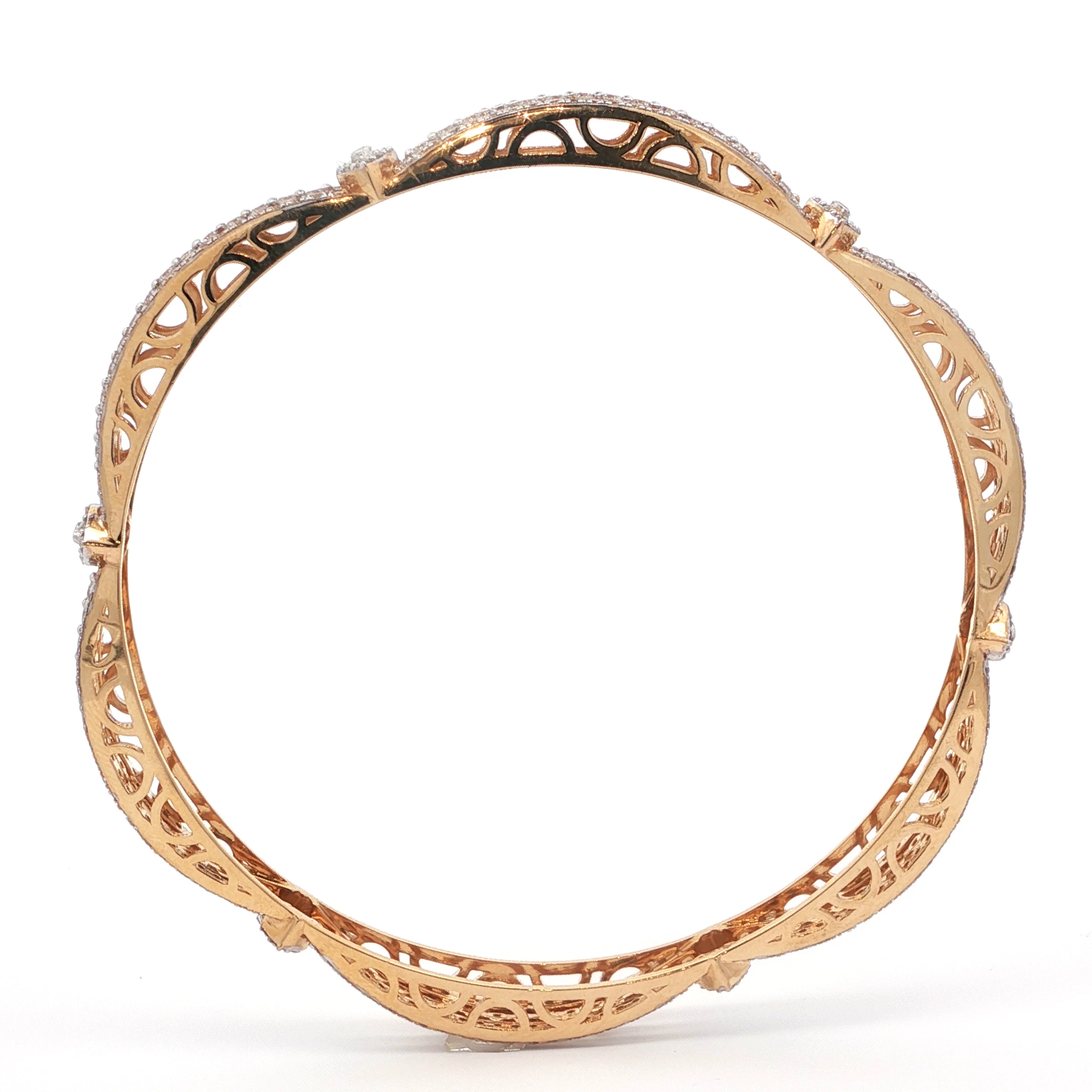 Elevate your wrist with this exquisite bangle set, meticulously crafted from lustrous 18k yellow gold. The elegant design showcases a mesmerizing array of fine diamonds set in a brilliant style, adding a touch of glamour. The timeless appeal and radiant sparkle make it a perfect statement piece.
