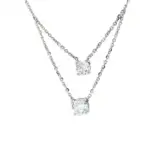 Elevate your style with this exquisite layered necklace, crafted in sleek 18k white gold plated. It features two brilliant-cut, round diamonds, each meticulously set to maximize light reflection and sparkle. The design is a harmonious blend of modern aesthetics and timeless elegance, perfect for adding a touch of sophistication to any ensemble. This necklace embodies luxury and understated glamour.
