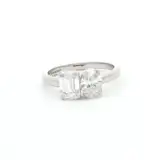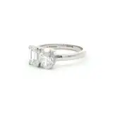 Exquisite 1.75 carat toi et moi ring showcases a captivating composition of oval and emerald diamonds set in lustrous 18k white gold. Each diamond has excellent polish and symmetry, further accentuating its brilliance. A harmonious blend of impeccable craftsmanship and timeless design, creating a striking piece of fine jewelry.